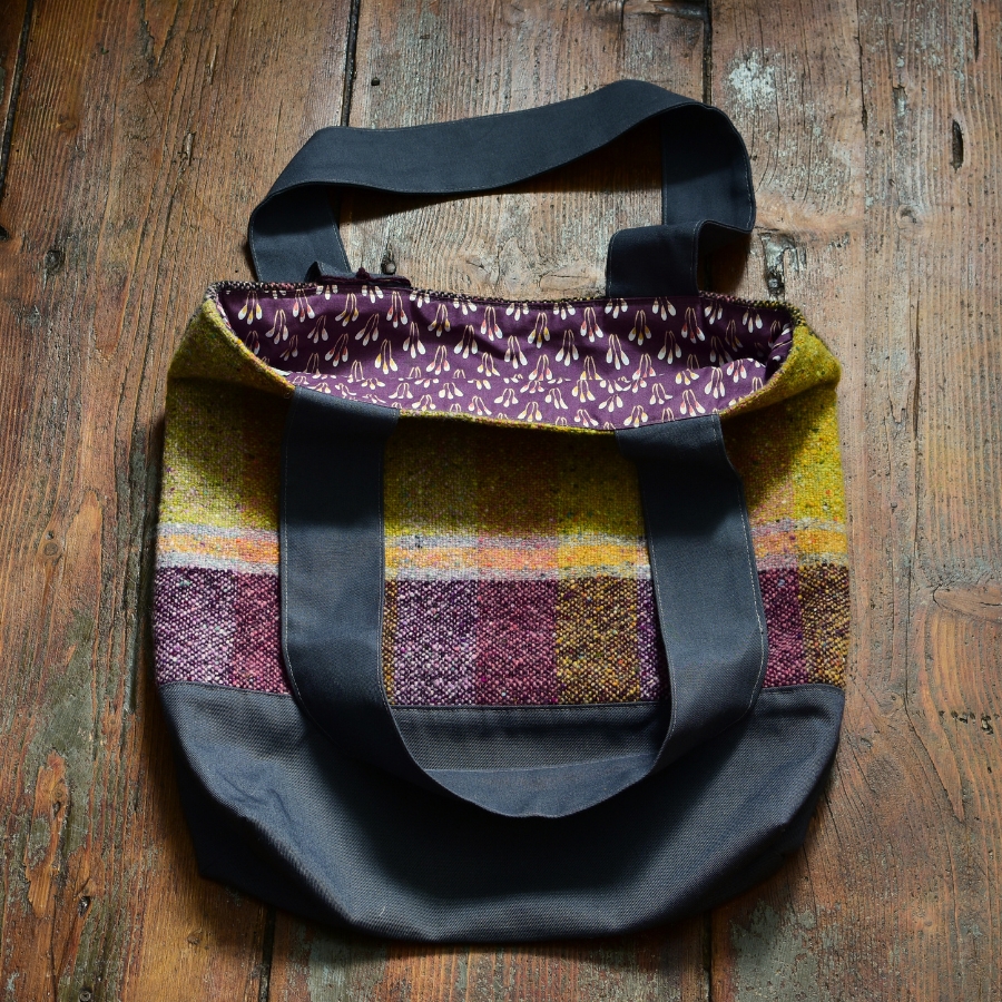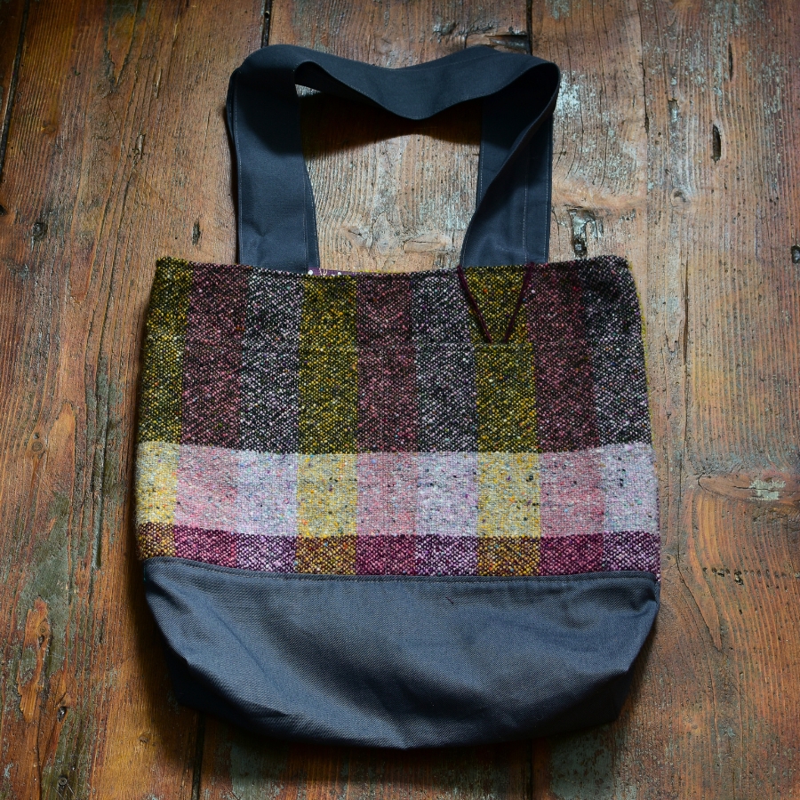 Vlněná taška ušitá z ručně tkané vlněné látky